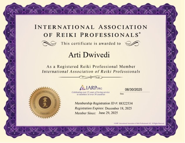 Arti is a name of trust for me . When i think of arti, i feel now my problems will be resolved . I took healing when i was recovering from my health issues. Reiki and high power healing modalities really help me to recover so fast and i felt as if i was not at all had critical health issues God bless you .