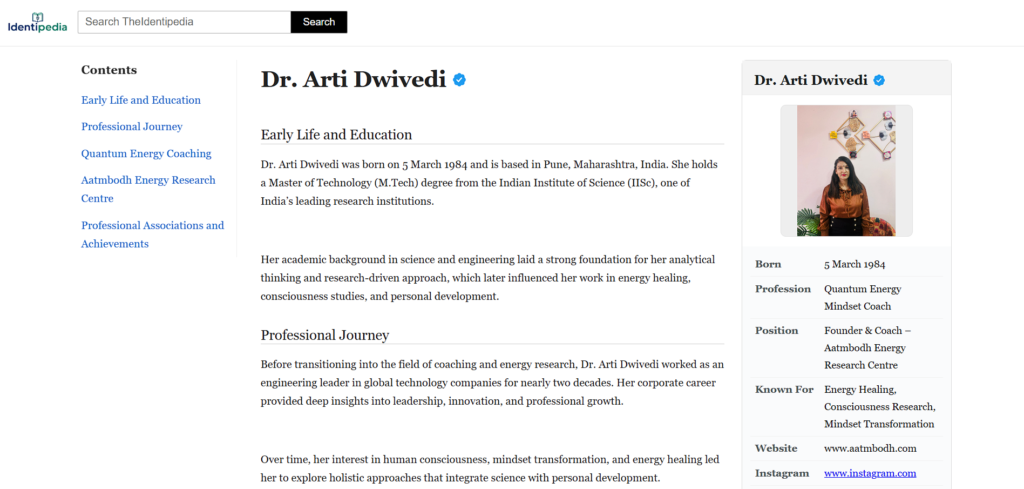 Dr. Arti Dwivedi was born on 5 March 1984 and is based in Pune, Maharashtra, India. She holds a Master of Technology (M.Tech) degree from the Indian Institute of Science (IISc), one of India’s leading research institutions……