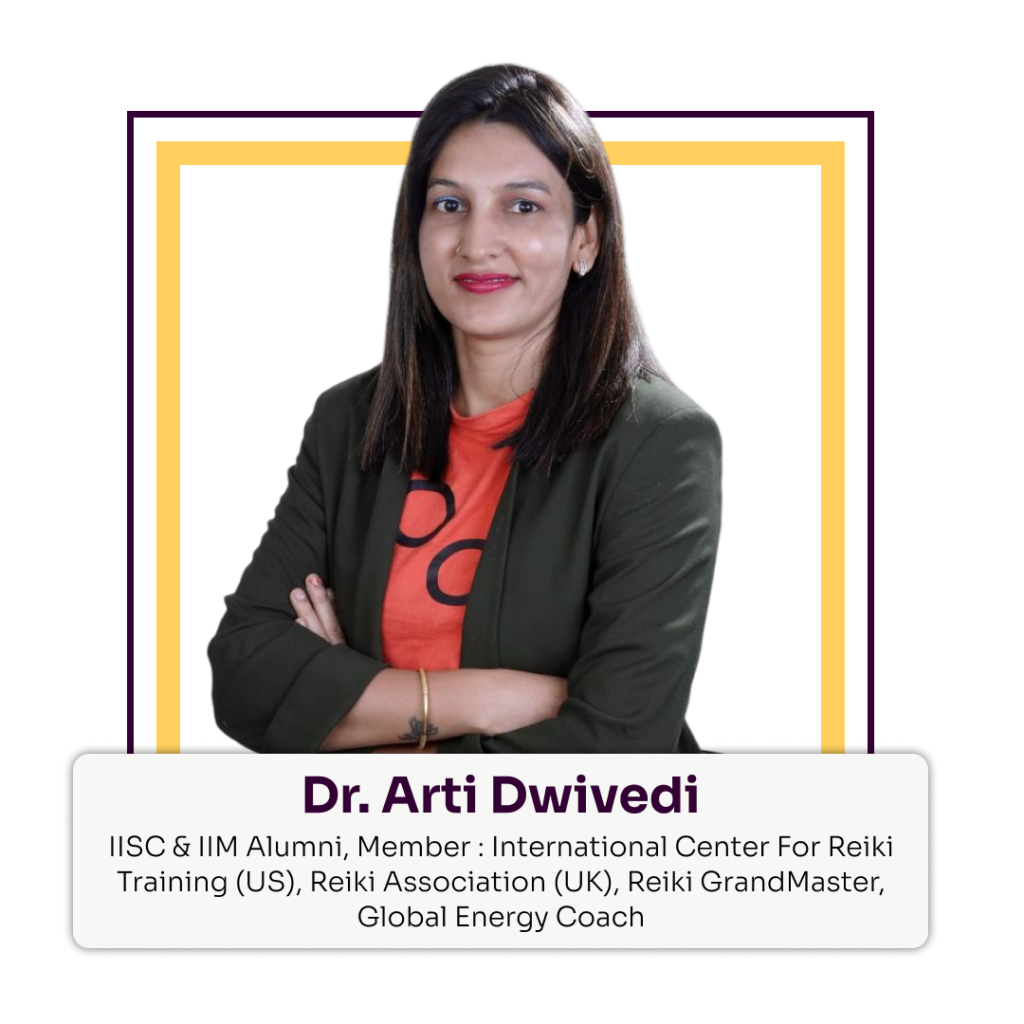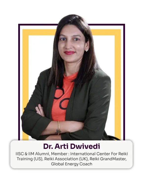 At Aatmbodh™, you are personally guided by Dr. Arti Dwivedi, a globally certified Reiki Master, energy researcher, and financial mindset mentor with extensive real-world healing experience.